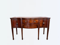 Georgian Style Mahogany Serpentine Sideboard with 2 drawers flanked by 2 cupboards standing on square tapered legs with spade feet.