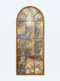 Arched Antique Metal Window Frame with Antiqued Mirrored Glass