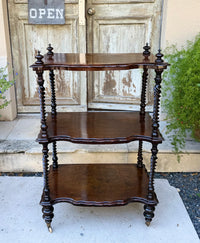 Antique English Burl Wood "What Not Shelf" / Etagere with 3 shelves and on original small Casters.