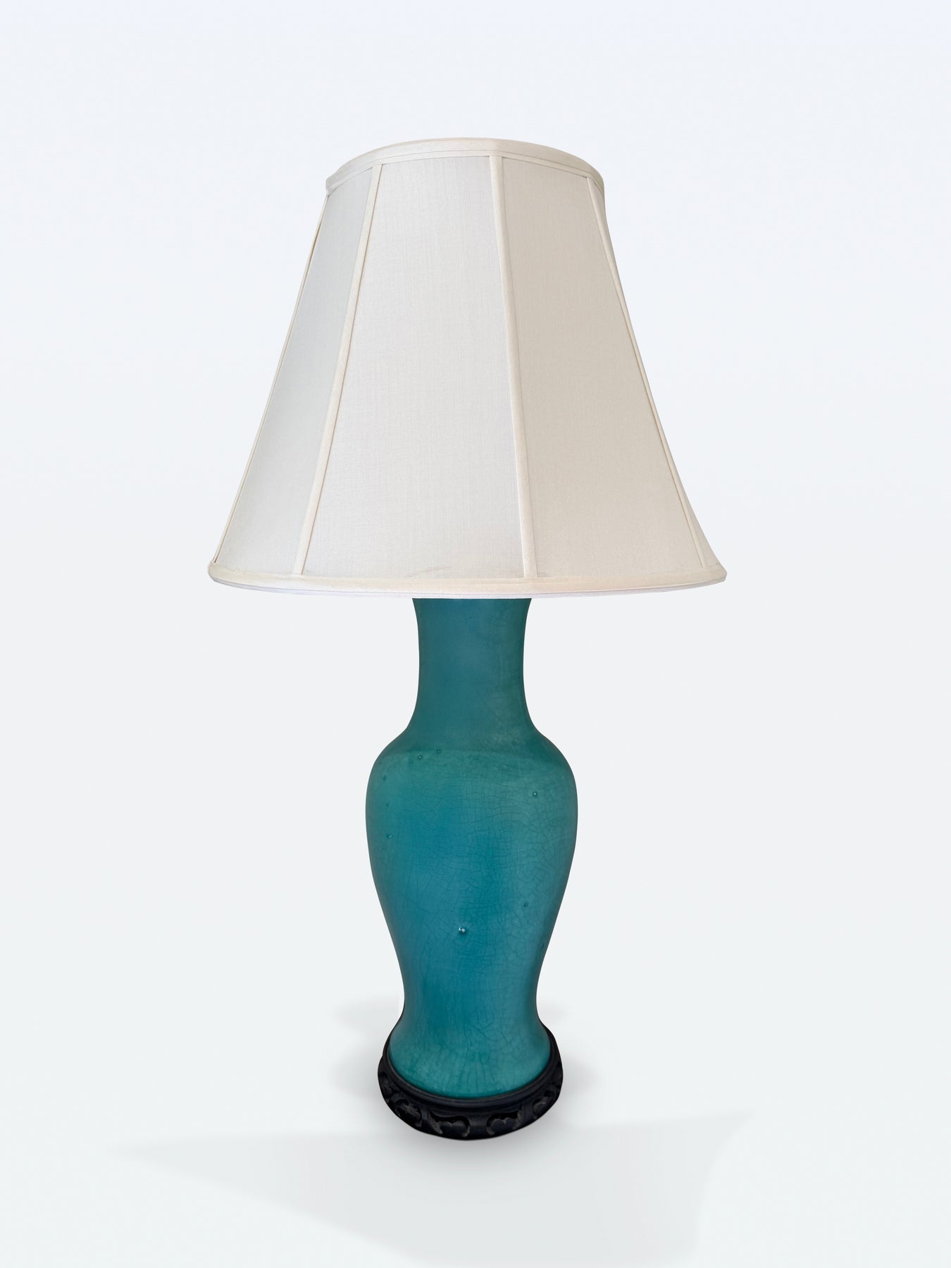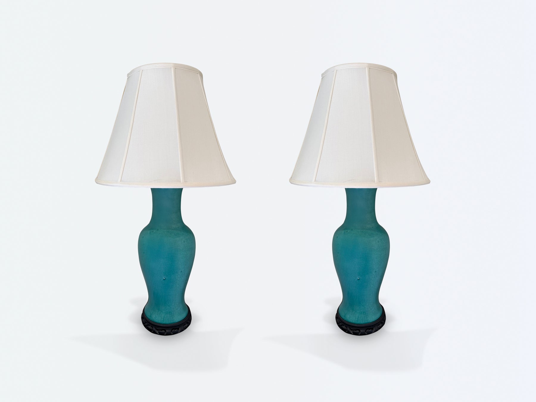 Wonderful pair of antique Chinese vases as lamps in monumental size.