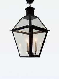 A Large vintage Bevolo lantern, often featuring the iconic French Quarter design handcrafted from copper with aged patina.