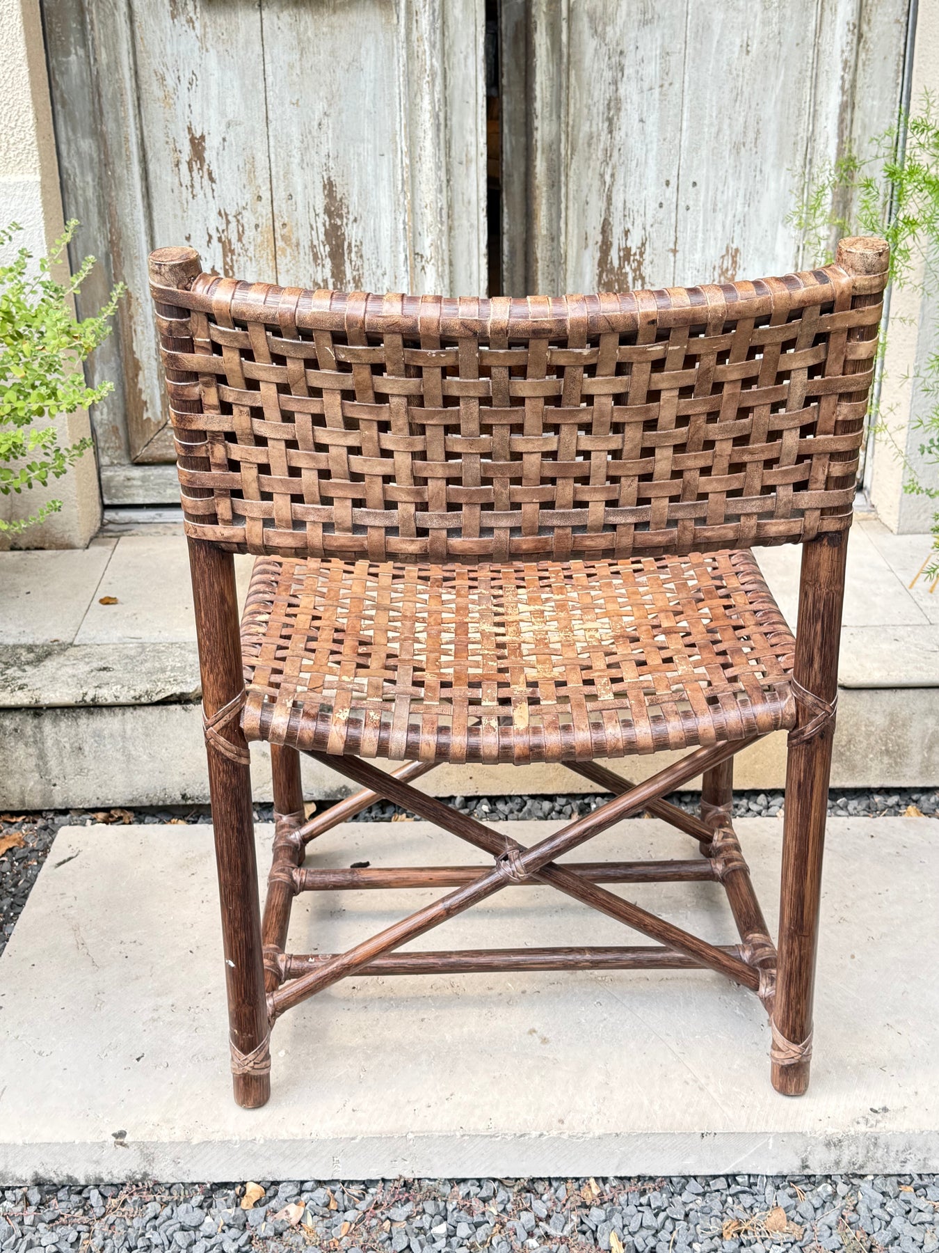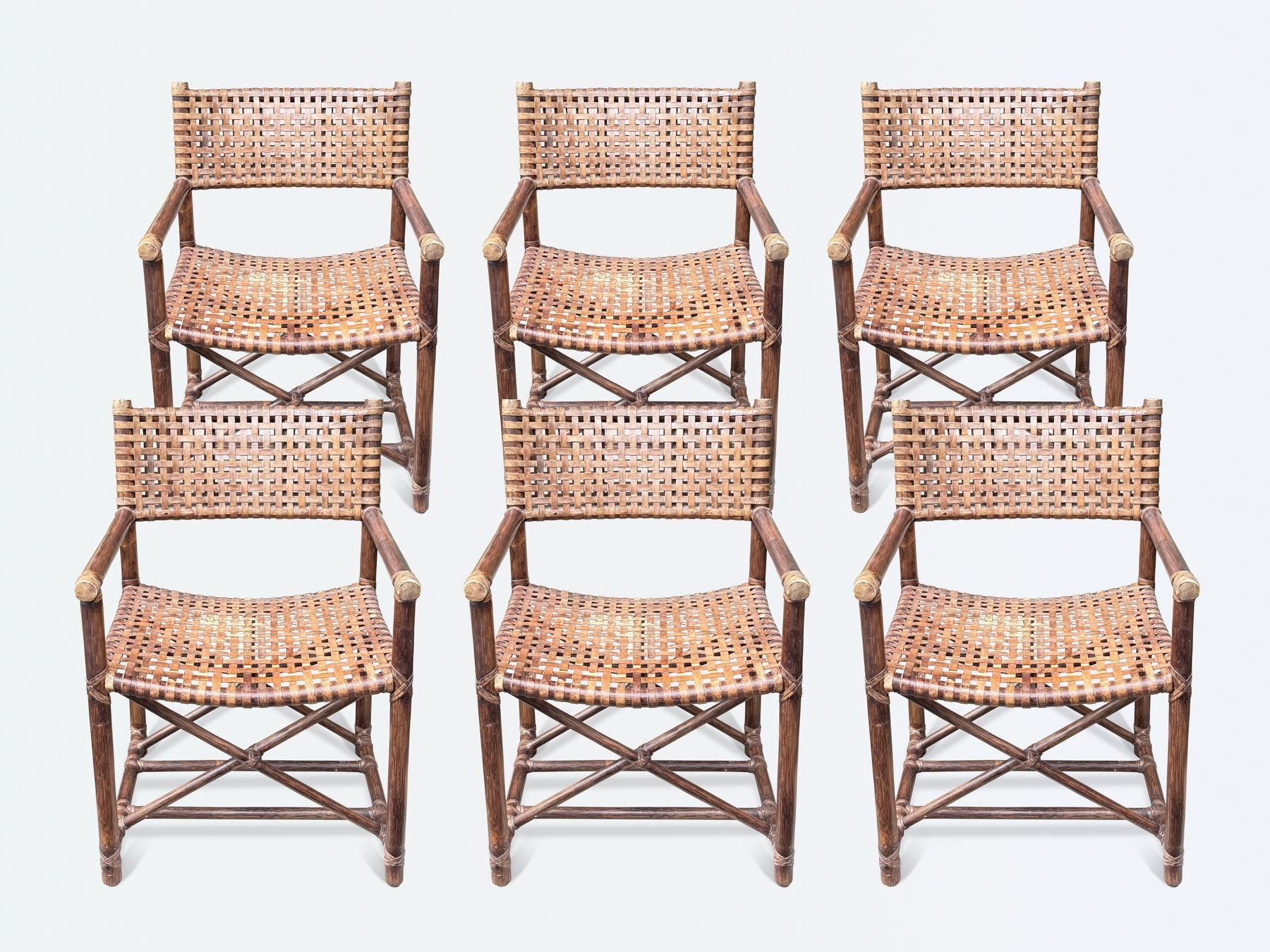 McGuire Laced Rawhide Rattan Dining Armchairs - set of 6