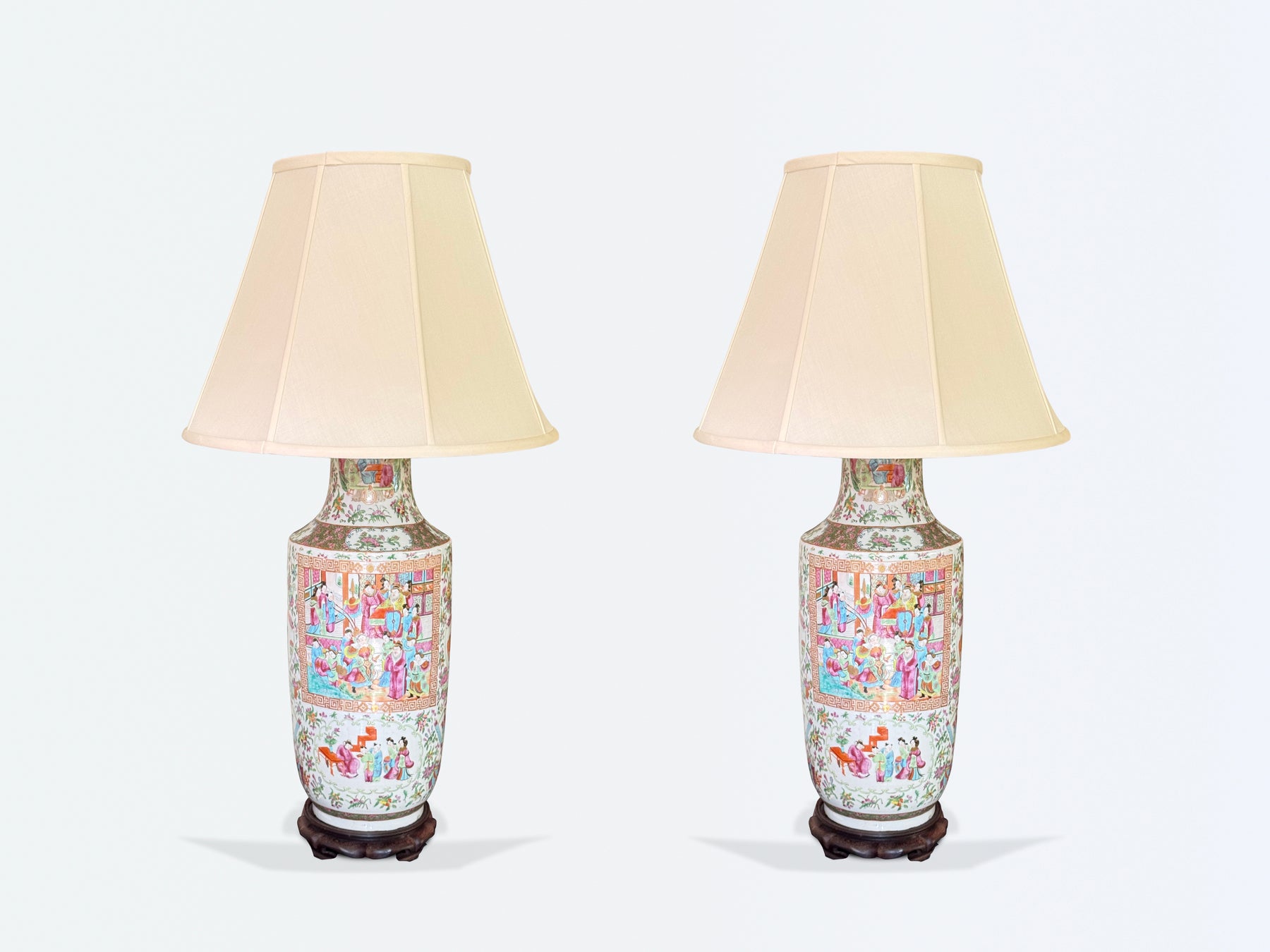 Antique Large Chinese Rose Medallion Vases as Lamps