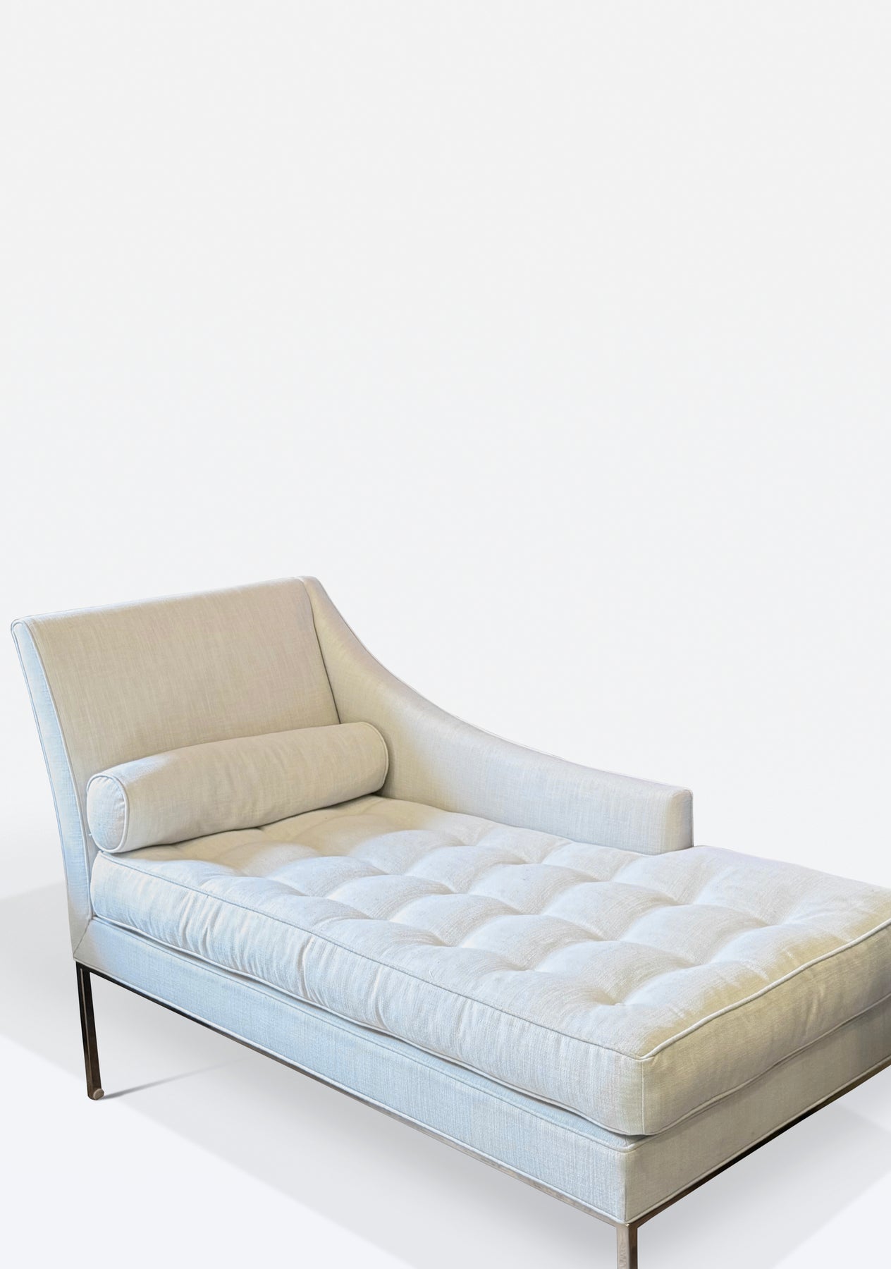 Vintage tufted upholstered chaise lounge with a chrome frame in the style of Harvey Probber.