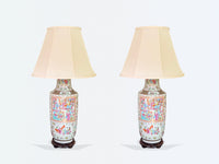 Wonderful pair of antique Chinese vases as lamps in monumental size.