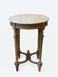 Antique Louis XVI Style Round Side Table with Marble Top