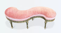 Antique French Louis XVI style upholstered bench with carved gilt frame and legs.
