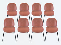 A set of 8 Beetle Side Chairs upholstered in a rose velvet on iron base purchased from Design Within Reach. The chair was designed by Danish architect Stine Gam and Italian architect Enrico Fratesi, who founded Copenhagen-based GamFratesi in 2006.