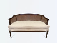 Vintage Caned Settee with Upholstered Seat Cushion
