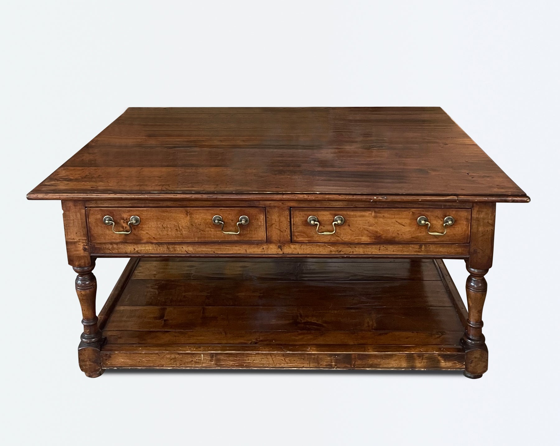 Georgian Style Glazed Oak Coffee Table made in England with drawers on each side Purchased from Carl Moore.