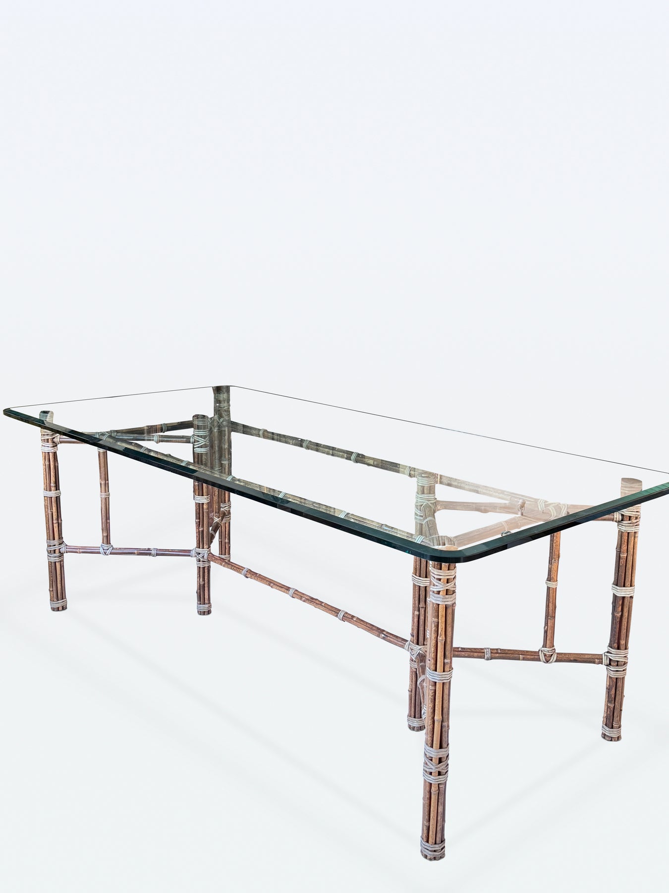 McGuire Rectangle Bamboo Dining Table with Glass Bevel Top