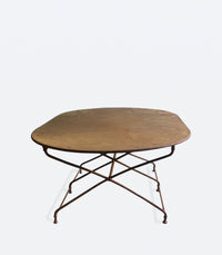 Antique French Wrought Iron Oval Dining Table with 3 legs and beautiful age and patina.