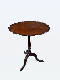 Antique mahogany tilt top table piecrust edge and birdcage base.