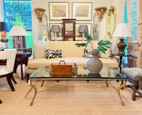 Iron and Beveled Glass Coffee Table finished crackled gold.