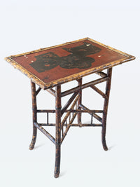 Antique English Scorched Bamboo Side Table with lacquered and painted top.