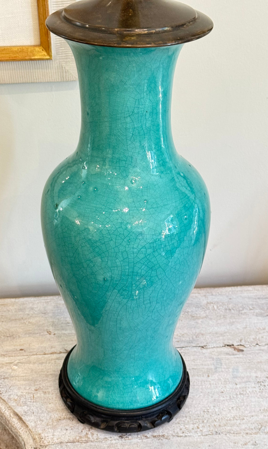 Antique Chinese Turquoise Vases Lamps - Pair