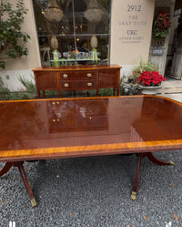 A beautiful Georgian Style Double Pedestal Dining Table with pretty banding and brass feet.